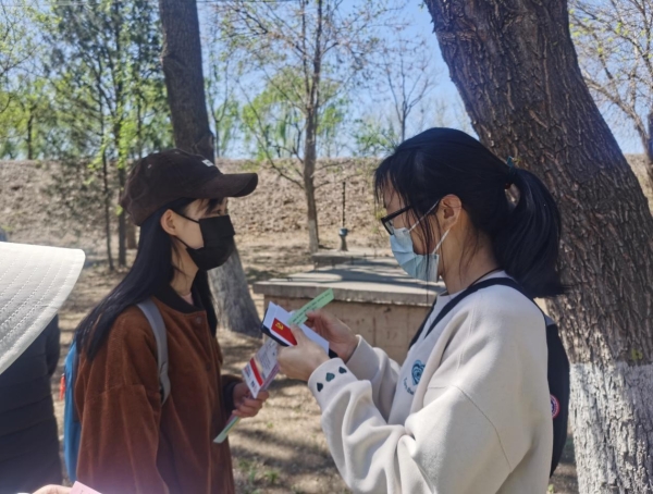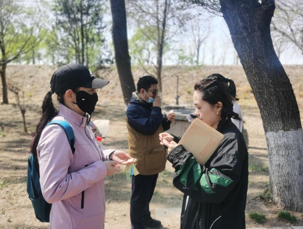 本次知识竞赛活动采取与研究所工会健步走活动相结合的方式,将活动地点安排在海淀健身绿道,在健步途中依次领取数张党的二十大精神学习卡片,边走边学,到达终点时能全部复述学习内容者胜出,胜出者还获得党旗贴纸贴于胸前,昂首挺胸展示成绩。活动让大家在领略美丽春光的同时,既强健了体魄,又充盈了思想。