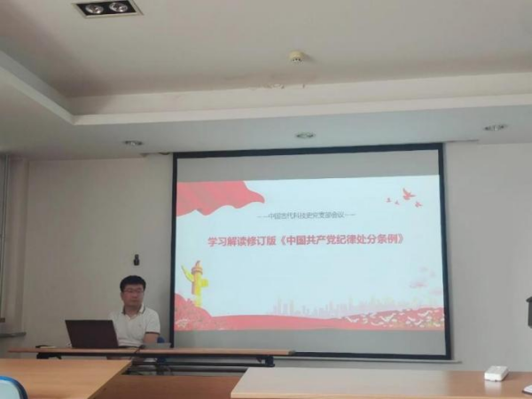 首先,党支部纪检委员杜新豪作了题为“学习解读修订版《中国共产党纪律处分条例》”的报告,带领党员深入了解《中国共产党纪律处分条例》(以下简称《条例》)的修订概况和修订要点,详细说明了党的纪律规矩是什么,明确了能干什么、不能干什么。杜新豪特别强调了科研人员应当将学术研究和纪律意识相结合,在科研项目的实施过程中始终保持清正廉洁,自觉遵守党规党纪,恪守学术规范,增强科研诚信意识。