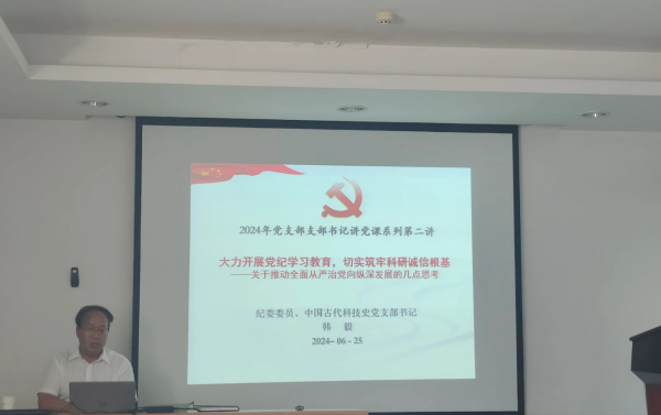 2024年6月25日,中国科学院自然科学史研究所古代科技史党支部举办“大力开展党纪学习教育,切实筑牢科研诚信根基”主题党日活动,活动由党支部书记韩毅主持。