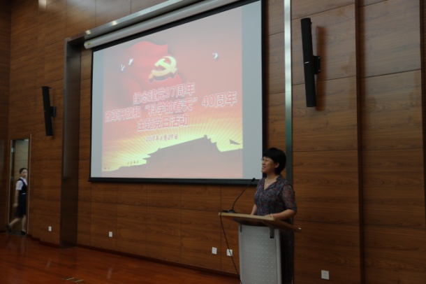 此次党日活动的主题是,庆祝建党97周年、纪念科学的春天和改革开放40周年,深入学习贯彻习近平新时代中国特色社会主义思想和党的十九大精神,表彰优秀党支部和优秀共产党员,树立典型,激励广大党员和职工奉献创新。