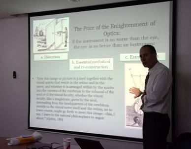 上午,Ofer Gal教授应邀在研究所510会议室做了关于十七世纪光学与视觉理论历史演进的学术报告,来自所内外共20人参加了活动。在报告中,Ofer Gal教授首先介绍了第谷和开普勒的贡献,以及他们对光学和视觉理论的理解。报告人认为,光学理论和视觉理论从一致走向分离是个复杂的过程,它反映的不是人的眼睛从视觉对象中解放出来,而是由于科学的观察以及对眼睛作为自然物质的光学工具的认识不断加深而导致17世纪人类观察者从光学文献中逐渐消失;眼睛渐渐成了一种像望远镜一样的媒介工具。Ofer Gal教授的这一报告引起了与会者的广泛兴趣。随后,Ofer Gal教授同与会者就species等重要术语的含义进行了讨论。 下午,我所部分科研人员与Ofer Gal教授在209会议室举行座谈会,就我所与悉尼大学科学史与科学哲学系的进一步合作展开了交流。双方协商拟定于今年12月组织一次有关中西科技史比较为主题的workshop。