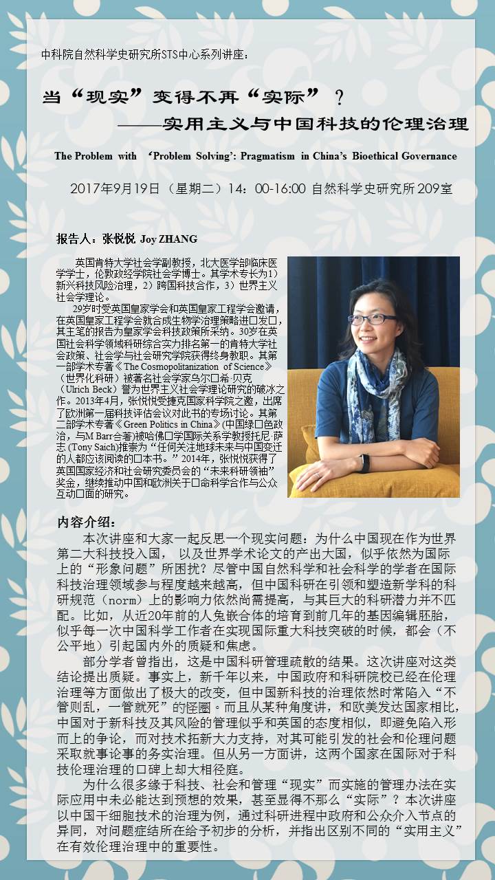 STS中心系列讲座:当“现实”变得不再“实际”?——实用主义与中国科技的伦理治理