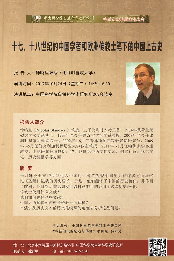 钟鸣旦:十七、十八世纪的中国学者和欧洲传教士笔下的中国上古史,10月24日下午 14:30-16:30