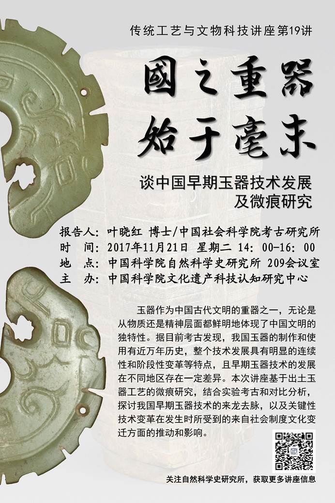 传统工艺与文物科技讲座第19讲:国之重器,始于毫末——谈中国早期玉器技术发展及微痕研究 11月21日(星期二)14:00—16:00
