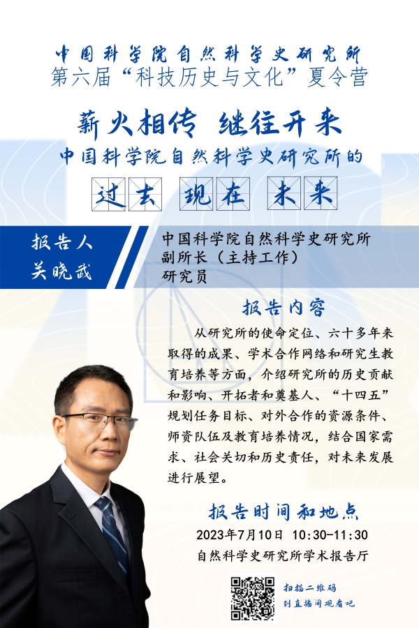 报告主题:薪火相传 继往开来——中国科学院自然科学史研究所的过去、现在、未来