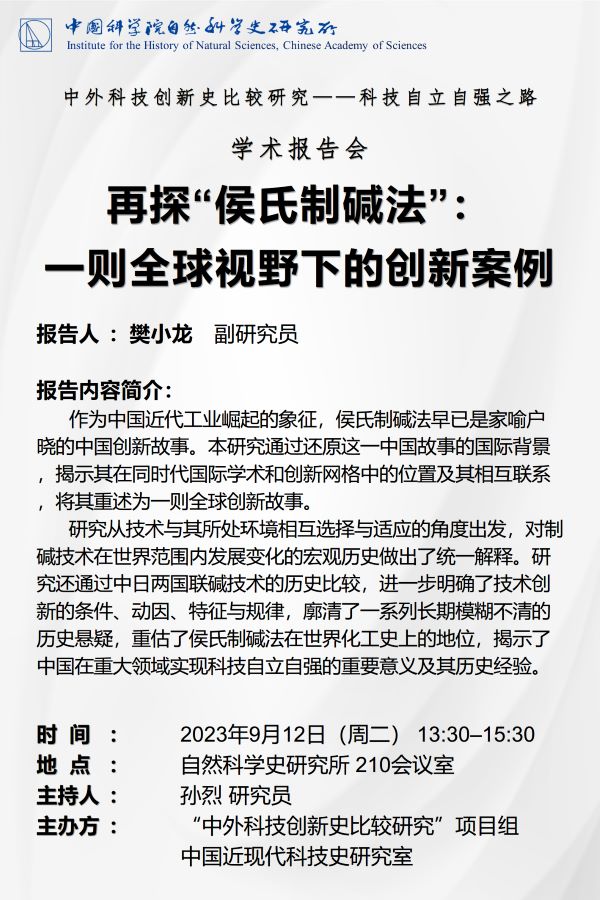 报告主题: 再探“侯氏制碱法”:一则全球视野下的创新案例