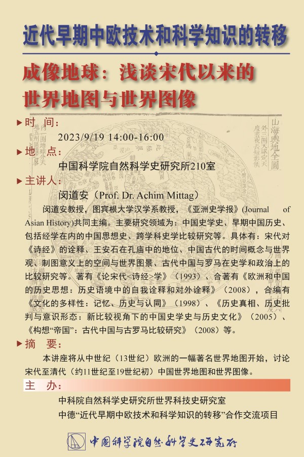 主办单位: 中科院自然科学史研究所世界科技史研究室、中德“近代早期中欧技术和科学知识的转移”合作交流项目