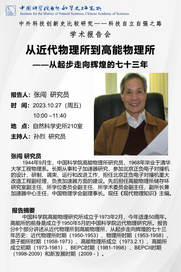 报告标题: 从近代物理所到高能物理所一从起步走向辉煌的七十三年