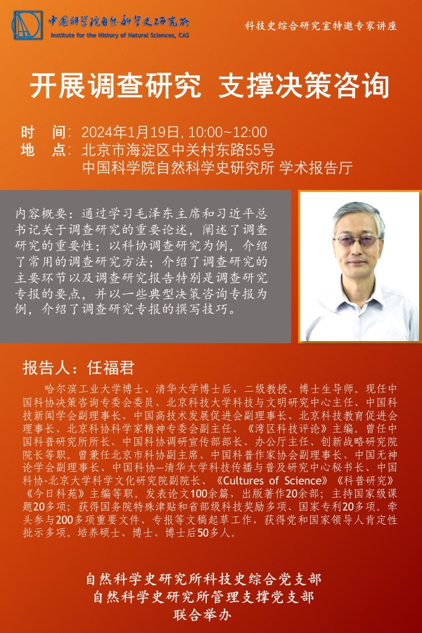 主 办 方:自然科学史研究所科技史综合党支部、自然科学史研究所管理支撑党支部