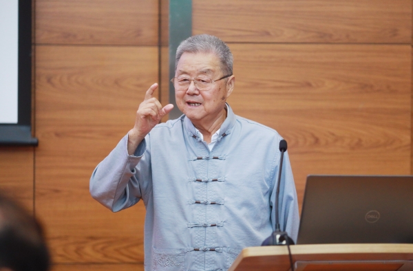 在与会者合影后,中国科学院数学与系统科学研究院研究员李文林、李俨先生的外孙刘新先生、钱宝琮先生之孙钱永红先生作为嘉宾相继致辞。李文林讲述了李俨、钱宝琮先生的学术影响。刘新讲述了李俨对中国共产党的认识与献身科学史事业的事迹。钱永红表达了对中国科学院自然科学史研究所与中国数学会联合举办这次研讨会的感谢,强调了《李俨钱宝琮科学史全集》的重要学术价值与对他进入数学史研究领域的影响。中国科学院自然科学史研究所研究员杜石然、法国巴黎第七大学和法国国家科研中心教授林力娜(Karine Chemla),丹麦哥本哈根大学北欧亚洲研究所教授、四川大学特聘教授华道安(Donald B. Wagner)以提前录制的视频相继致辞。杜石然表达了对举行这次研讨会的祝贺。林力娜和华道安都表达了对李俨、钱宝琮先生学术成就和贡献的敬仰。
