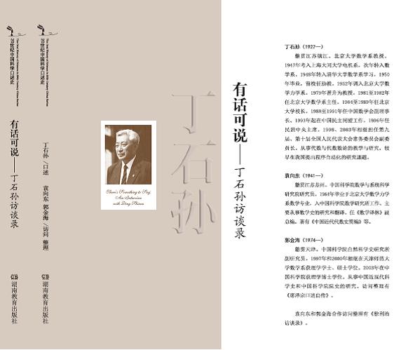 《有话可说——丁石孙访谈录》是中国科学院数学与系统科学研究院研究员袁向东、自然科学史研究所副研究员郭金海,继《徐利治访谈录》(2009)之后又合作访问整理的一部关于数学家的口述史著作。该书是《20世纪中国科学口述史》(中国科学院科技政策与管理科学研究所研究员樊洪业主编)丛书的一部,于2013年7月由湖南教育出版社出版。