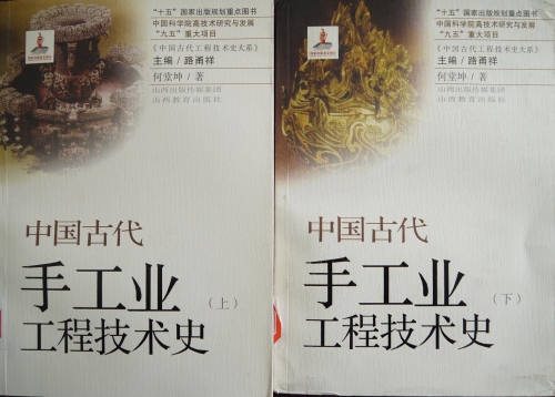 《中国古代手工业工程技术史》(上下册)是“十五”国家出版规划重点图书、中国科学院高技术研究与发展“九五”重大项目成果。该书通过大量的文献资料、考古资料、科学分析资料和传统技术调查资料,较为全面、系统地介绍了我国古代多门手工业技术产生、发展的基本历程、主要技术成就,其中涉及的技术史门类有:采矿(包括金属矿、煤矿、井盐和天然气开采)、冶铸、陶瓷、机械、纺织印染、造纸印刷、火药、指南针、油漆、玻璃技术等。该书内容概括,资料丰富,以史带论,集中反映了学术界的最新研究成果。