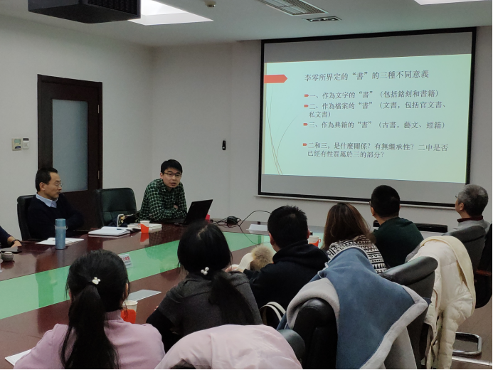 2018年12月21日上午,复旦大学出土文献与古文字研究中心郭永秉教授在研究所209会议室做了题为“简帛时代的书籍”的学术报告。本次报告是“科技典籍整理与研究”项目组与“青年学术沙龙”联合举办的“文献技术史系列”的第一讲。