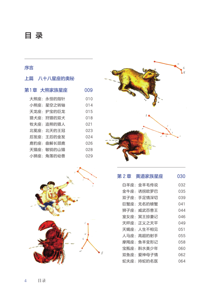 《星座物语:走进诗意的星空》一书分为上、下两篇。上篇采用星座家族的分组方式,将全天星座分为大熊家族、黄道家族、英仙家族、武仙家族、猎户家族、幻水家族、拜耳家族和拉卡耶家族,介绍了现在国际上公认的88个星座的源流。下篇主要介绍那些曾经在历史上短暂存在过的星座,我们可以从中看到天文学家们不为人知的一面。本书包括368幅珍贵的星空插图,110个星座的精彩故事,带你一起在人文与诗性中触摸宇宙的浪漫。