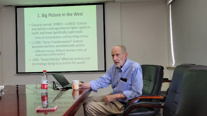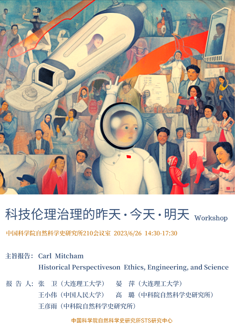 2023年6月26日下午,中国科学院自然科学史研究所科技与社会研究中心成功举办了“科技伦理治理的昨天·今天·明天”的工作坊。会议邀请了美国著名技术哲学家米切姆做了题为“Historical Perspectives on Ethics, Engineering and Science”的主旨报告。此外,大连理工大学的张卫教授做了题为“科技伦理治理的文理协同共治机制”的报告,大连理工大学晏萍副教授报告题目为“第三届人类基因组编辑国际峰会声明:一个伦理学视角的初步分析”,中国人民大学王小伟副教授做了题为“人化RRI初探”的报告,中科院自然科学史所高璐副研究员报告题目为“从激进科学运动到RRI:科技伦理共治何以达成”。工作坊从14:30持续到近19:30, 来自清华大学、中国科学院大学、北京大学、中央党校以及科学史所的20余位老师与同学参加了研讨。