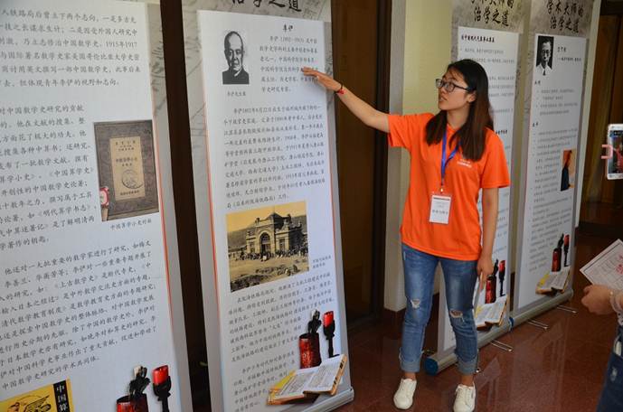 而“学术大师的治学之道展”则以科技史的视角,从数学、天文、地学、物理、建筑五学科,选取了李俨、竺可桢、叶企孙、席泽宗、林徽因等兼有中西教育背景的学者,当面对社会变迁时,不忘初心,一路前行,最终成长为一代大师,为社会做出卓越贡献的事例。