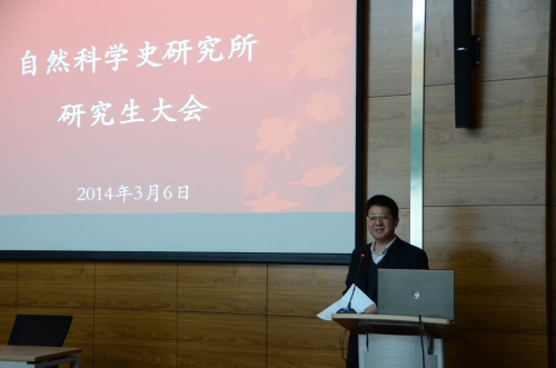 2014年3月6日上午,自然科学史研究所召开研究生大会,会议由所联办副主任、研究生部负责人纪巧主持,副所长孙小淳、党办主任李映新、研究生党支部书记、研究生辅导员韩毅、研究生辅导员陈悦以及在读研究生共50余人参会。