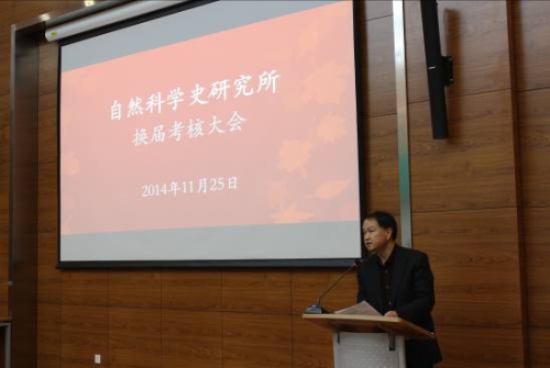 2014年11月25日,自然科学史研究所召开领导班子换届考核大会。中国科学院党组成员、北京分院院长、党组书记何岩,北京分院党组常务副书记、副院长、京区党委副书记马扬,院人事局领导干部处处长李洪伟,副处长高继承,北京分院监察审计处副处长严枫,干部工作处副处长冯越,及干部工作处和京区党委组织部工作人员等一行11人组成的考核组参加了考核大会。会议由马扬主持。