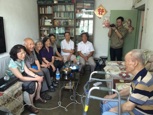2015年8月26日,在自然科学史所党委书记袁萍的带队下,党委委员、纪委委员、在职党支部书记、离退休党支部书记和委员、团委书记和离退休工作人员到离休老干部张晋儒先生家进行慰问。