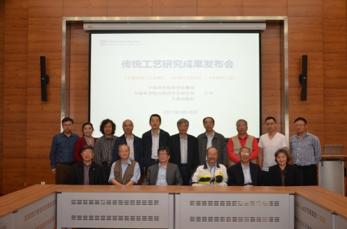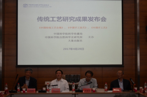 2017年4月28日上午,由中国科学院科学传播局、中国科学院自然科学史研究所以及大象出版社联合主办的传统工艺研究成果发布会在自然科学史所研究所报告厅举行。传统工艺研究成果主要包括《中国传统工艺全集》《中国手工技艺》和《中国手工艺》三部著作,由中国科学院自然科学史研究所组织编撰、大象出版社出版。