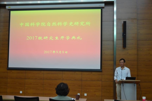 2017年9月8日,自然科学史研究所2017–2018学年开学典礼在学术报告厅举行。党委书记袁萍、副所长韩琦、党委副书记兼纪委书记赵力、所长助理孙显斌及研究生导师和职能部门负责人出席,高年级研究生与会,一起迎接2017级新生的到来。典礼由所长助理关晓武主持。