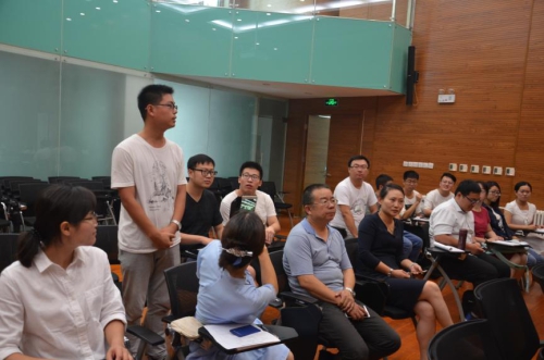 2015级博士生李明洋代表高年级研究生发言。他从个人体验的角度比较了大学和研究所氛围的不同,认为大学鼓励学生广博和发散,而研究所要求精专和收敛。他认为要想做出好的研究成果,就必须在两种思维方式之间维持一种“必要的张力”。因此他建议各位新生走出自己的“舒适区”,通过这种方式尽快提升自己,从而在人生的广度和深度上都获得拓展。