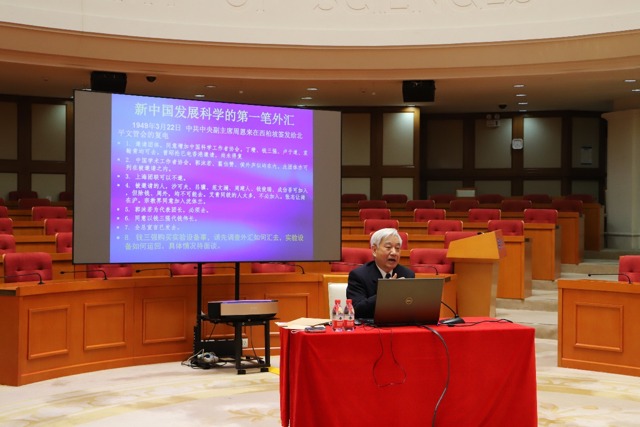 下午的讲座由自然科学史研究所所长助理孙显斌主持。孙显斌指出,在建院纪念日,和祖国的未来一起回顾历史、展望未来,正是科学院担当意识的传承,是共和国科技事业的传承。