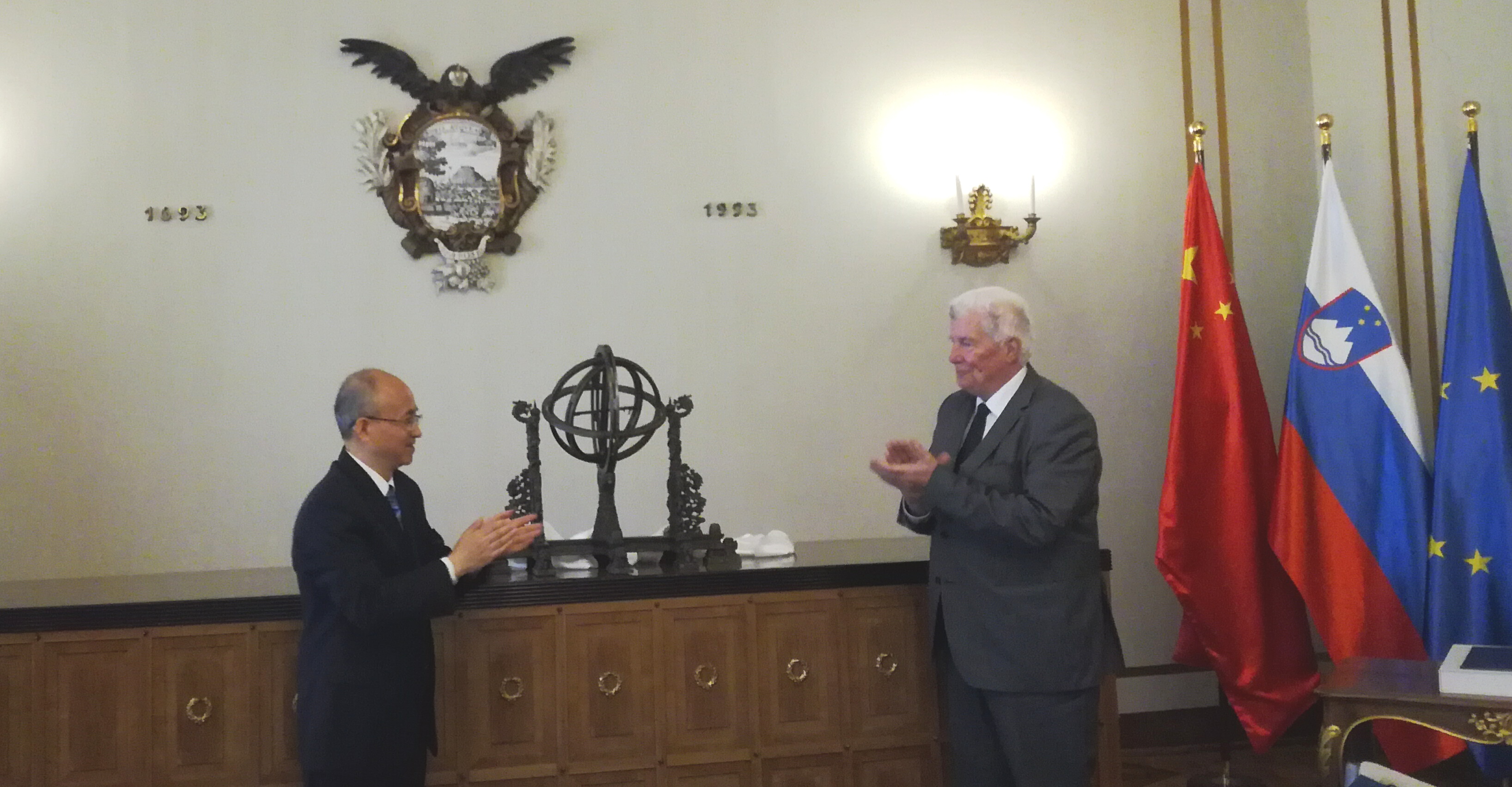 张亚平副院长在致辞中说,中国与斯洛文尼亚有很深的传统友谊,双方开展了诸多科技领域的合作。斯洛文尼亚科学与艺术院是中国科学院的最重要的欧洲伙伴之一。2016年10月,斯洛文尼亚总统波鲁特·帕霍尔(Borut Pahor)支持中科曙光公司在斯洛文尼亚的新戈里察设立了云计算中心。白春礼院长于2017年7月访问斯洛文尼亚科学与艺术院,将两院合作关系推向更高层次。为纪念刘松龄和中国与斯洛文尼亚二百多年的科学交流史,白院长与巴伊德院长一致同意制作玑衡抚辰仪的复制品。据此,中国科学院自然科学史研究所监制了这架仪器的1:5复制品。中国科学院将它捐赠给斯洛文尼亚科学与艺术院,因为它不仅代表了中国与斯洛文尼亚两国的长期友谊,也预示着双方合作将取得更丰硕的如星辰般闪烁的成果。
