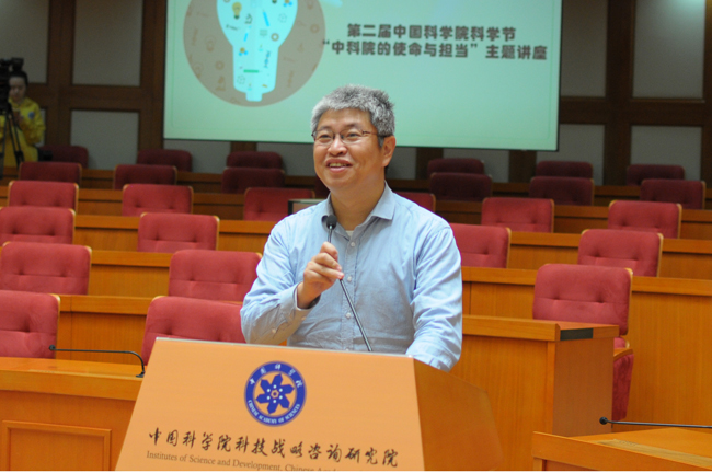 作为国家战略科技力量,中国科学院是国家自然科学的最高学术机构,是自然科学与高新技术的综合研究与发展中心,是国家科学技术研究与发展体系的重要组成部分,也是国家科学传播与普及事业的重要组成部分,承担着传播科学知识、弘扬科学精神、宣传科学思想和科学方法的重要职责,发挥着国家科学思想库、知识库的重要职能。在祖国70周年华诞与中科院建院70周年之际,通过举办“中科院的使命与担当”讲座,向社会公众分享中科院的故事,弘扬科学家精神,倡导担当意识,传播科学思想,促进我院科学传播工作的可持续发展,也是中科院的责任与使命。