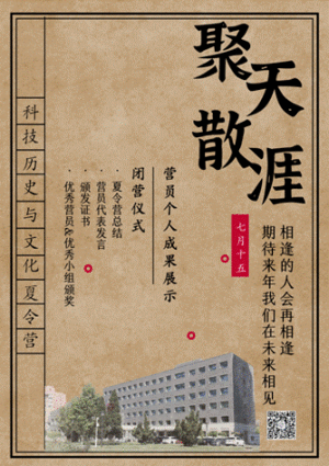 本次夏令营共设6场主题报告,2场科研实践活动,1场聚智对话访谈,1场科技史展览参观的活动。通过10场不同类型的活动,想要让想迈进科技史领域的学生,从各方面对科技史有一个粗浅的认识。