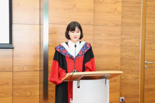 韩毅研究员代表教师发言,希望即将毕业的同学不要忘记今日的成就是由昨天的奋斗换来,不要忘记研究所的治学精神和文化、在学期间老师们的谆谆教导,希望带着科学梦想和自然科学史研究所的烙印,在以后的人生道路上不断奋斗,创造出一片新天地。