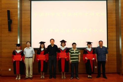 毕业典礼上还对杨丽娟获院长优秀奖和北京市优秀毕业生荣誉称号、宋元明获朱李月华优秀博士生奖予以表彰,对获得中国科学院大学2016-2017学年三好学生、三好学生标兵、优秀毕业生、优秀学生干部荣誉称号的同学进行颁奖,赵力宣读获奖者名单。