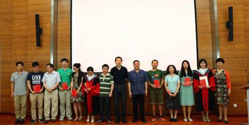 学位评定委员会副主任邹大海研究员宣读了学位授予名单,陈蜜、刘超、牛腾和杨丽娟获得博士学位,陈雯、杜良、徐志凌和杨策获得硕士学位。导师们为毕业生们扶正流苏、颁发学位证书,并合影留念。