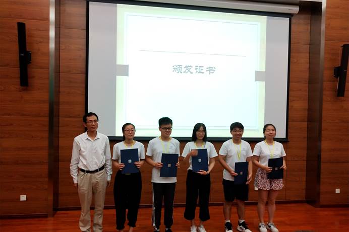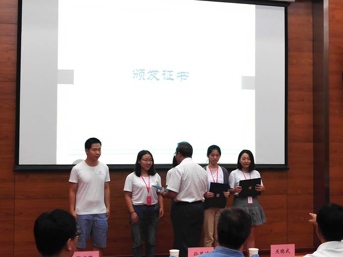 参与闭营仪式的老师代表为营员们颁发了分别由中科院自然科学史研究所和中国科学院大学授予的夏令营结业证书。所长助理关晓武研究员对本次夏令营的成功举办表示祝贺,并称赞了营员们真诚、热情、乐观的性格,以及在成果展示活动中展现出的团队合作精神。他认为此次夏令营充分展现了研究所的风貌,研究所首届夏令营的成功举办离不开老师和志愿者们的努力和付出,对他们表示感谢。他鼓励营员们在以后的学习中继续努力,同研究所一起,为学科领域添砖加瓦,为国家学术建设做贡献。最后,关晓武研究员宣布,2018年中国科学院自然科学史研究所首届大学生“科学历史与文化”夏令营正式闭营。