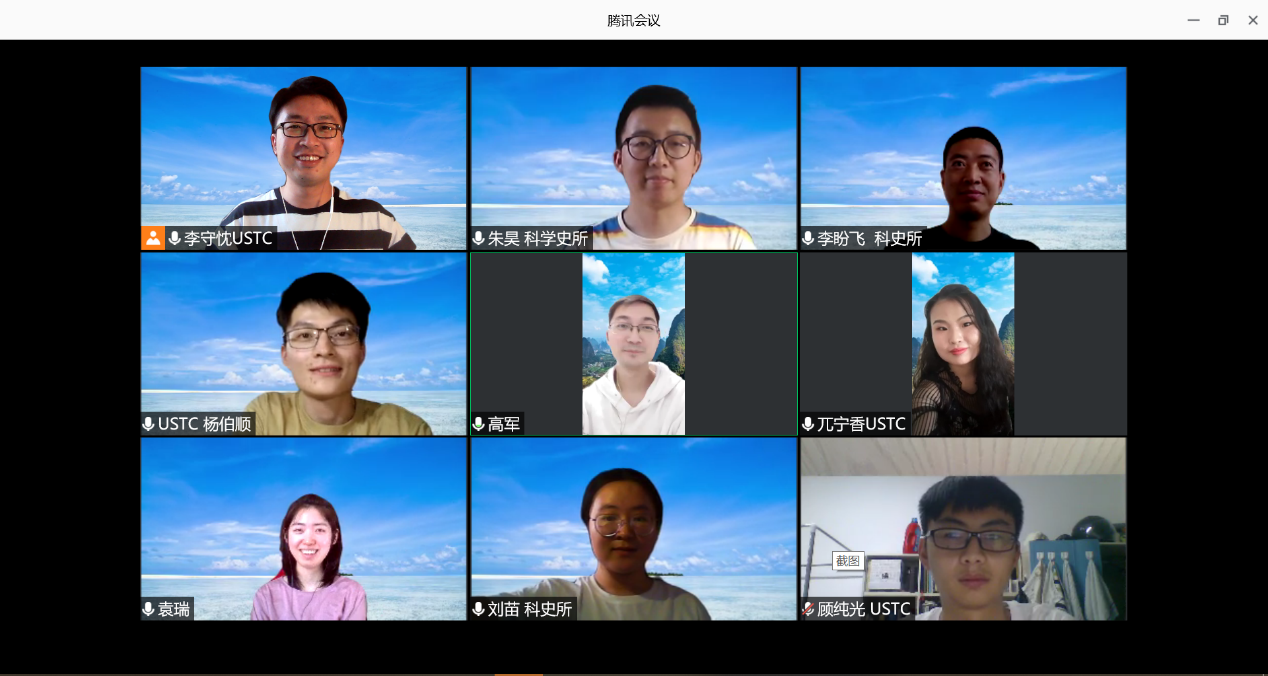 本次论坛在夕阳中落下帷幕,在总结陈辞环节,关晓武研究员对于参会师生与组织者都表示感谢,而本次论坛采用了视频方式,既出于特殊情况,也体现了当下的学术活动开展方式的多样化。关于本次论坛报告内容,他提到,此次学术成果展示涉及古今中外、多个学科,同学们的研究方法多样,观点丰富,对于同学们的学习研究成果充分肯定,但也存在一定的问题,需要加强学习、思考与训练。同时,关晓武研究员对于未来“经实论坛”的举办作出展望,要进一步推动学术平台的建设、打造品牌效应,他也热情地欢迎同学们积极参与下一届的论坛活动。石云里教授也表示了在特殊时期,本次论坛的顺利举办令人欣慰,对于点评专家、报告同学、会务人员都表达充分感谢。他指出,“经实论坛”是培养与训练研究生的良好平台,鼓励同学们抓住机会,积极参与。而此次的线上会议也为学术交流活动的开展方式提供了新的思路,以后可考虑实地与线上结合的方式,举办形式开放化、多样化、灵活化,让同学充分获得学习与交流的机会。最后,他们再次对于特殊时期中积极组织和参与的师生们表示了感谢,并期待未来的交流与发展。论坛结束后,参会人员通过视频截图进行了别开生面的合影留念。