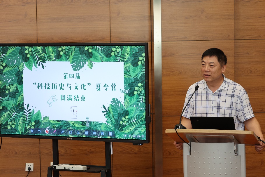 夏令营营长袁瑞对本次夏令营作总结。她回顾了五天来的日程,包括专家讲座、参观古观象台和文献情报中心、小组合作课题等,希望营员们能从中感受到科技与人文相碰撞的魅力,而研究所将始终为热爱科技史的同学们敞开大门。