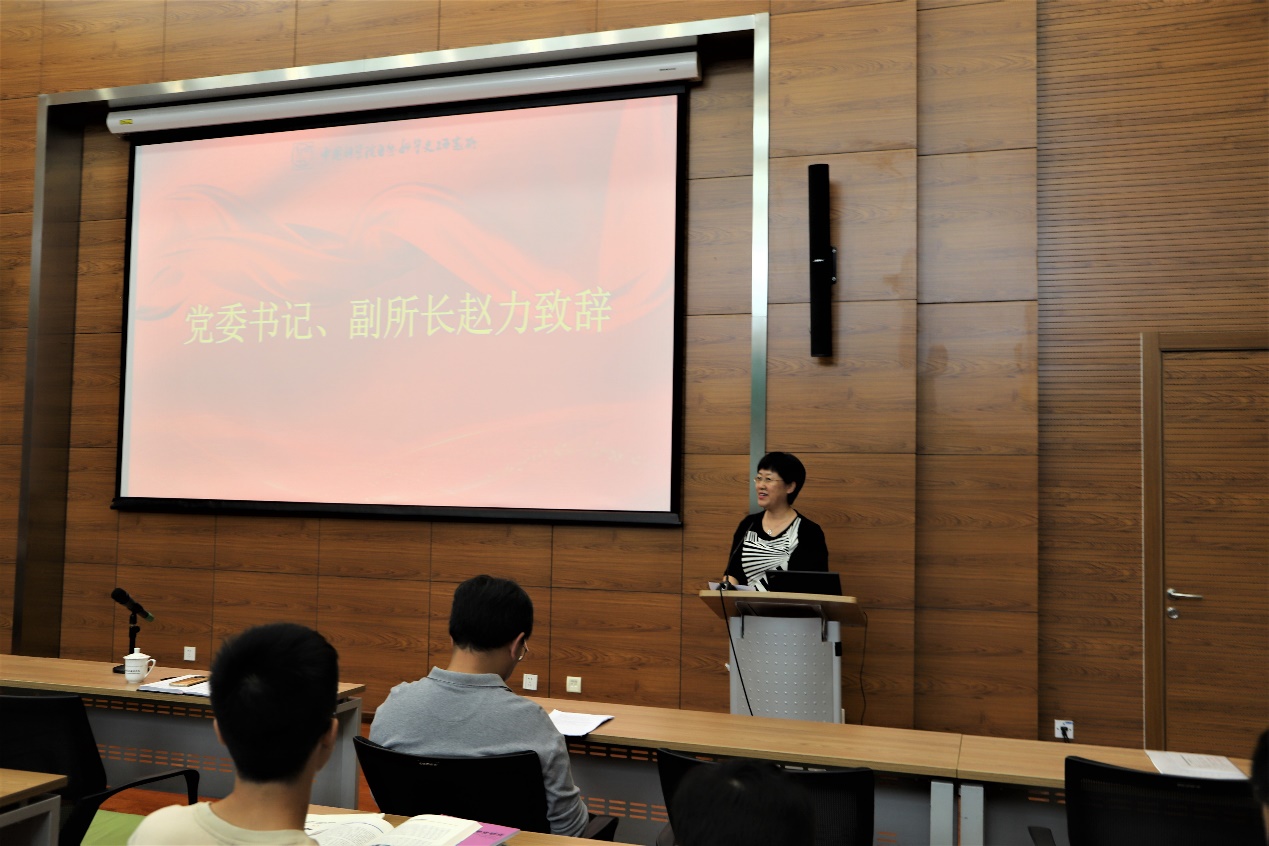 赵力代表研究所全体师生和全体职工欢迎新同学并致辞。她向新生介绍了研究所的历史与概况,希望大家作为科学史所的研究生,作为新时代的青年,要拥有穿透历史的眼光,勇担时代重任,将个人志向融入到国家使命之中,在研究所有所收获,有所成长。
