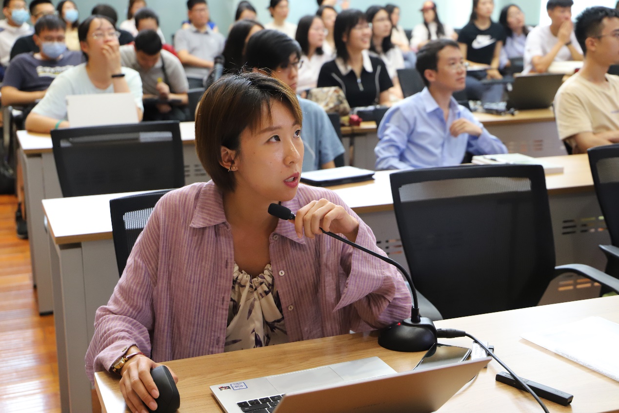 2020级博士徐裕茹代表高年级学生向新生们表达欢迎,通过分享自己的经历,给予学弟学妹们参考;她也分享了自己正在努力的方向:自信、专注、开放、对他人共情、对现世关注,最后向同学们送出祝福,希望大家带着理想与活力在科史所开始新的探索。