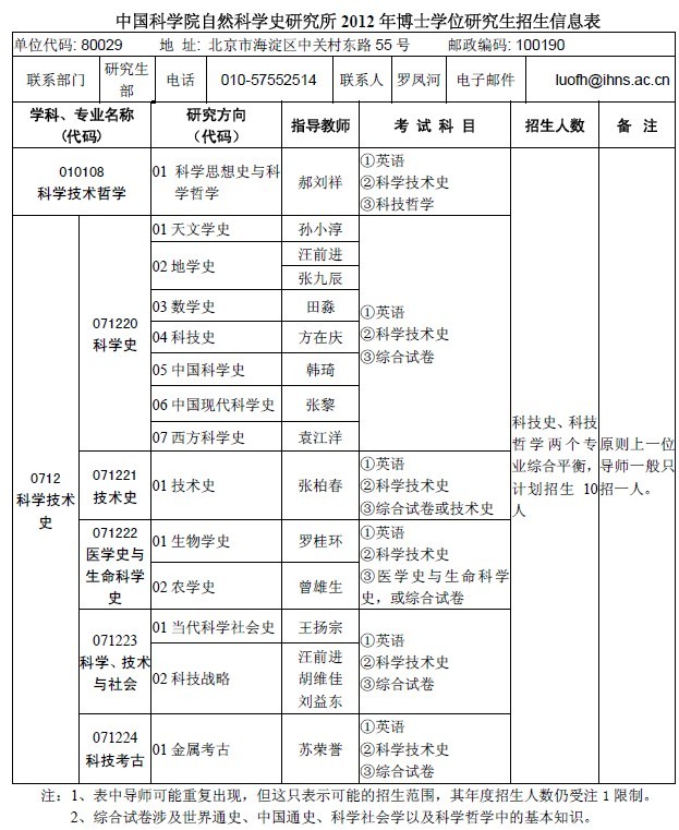 欢迎您报考自然科学史研究所,与我们一道共同繁荣我国科技史事业。