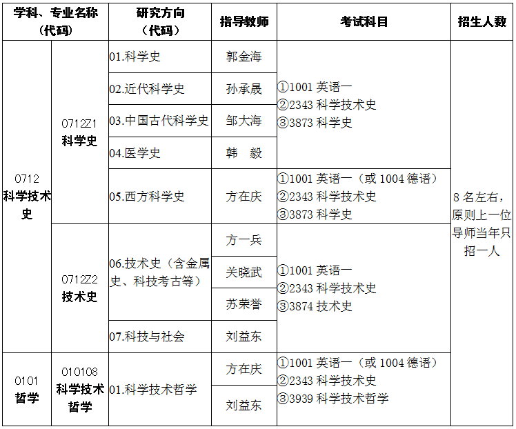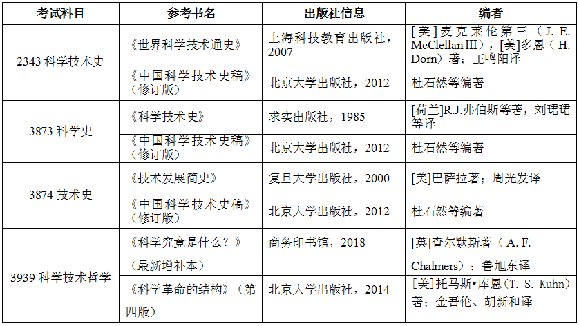 自然科学史研究所2020年博士学位研究生招生专业课参考书目