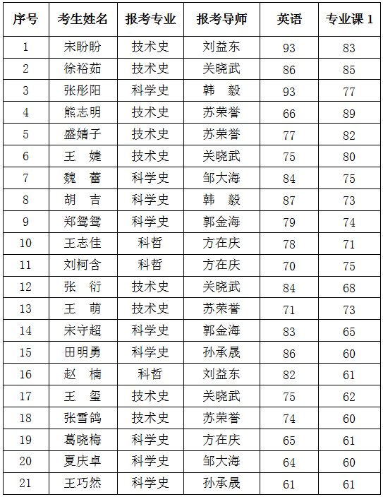 根据《中国科学院自然科学史研究所2020年博士招生考试办法》和笔试成绩,现将进入面试环节的考生名单公布如下:
