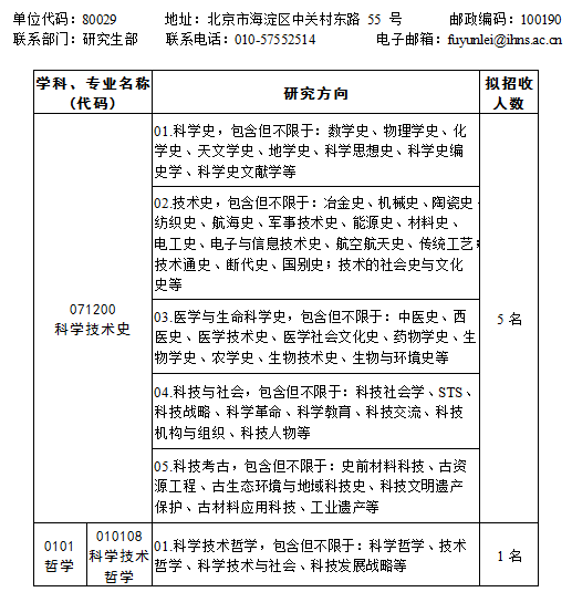 注:1. 除专项计划外,科学技术哲学专业预计招生总人数为1人,包含推荐免试考生和统招统考考生。如接收推荐免试考生,则不再招收统招统考生。