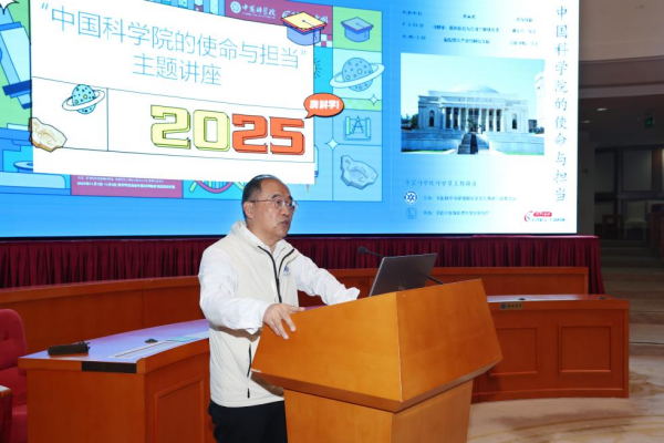 中国科学院学部工作局三级职员(正局级)周德进出席活动并致辞。他指出,“中国科学院的使命与担当”系列讲座是践行中国科学院“与祖国同行、与科学共进”理念的重要载体,既能引导科研人员深化对国家战略科技力量核心使命的认知,更能搭建科学普及的桥梁,让创新精神浸润公众尤其是青少年心田,为科技创新培育后备力量。