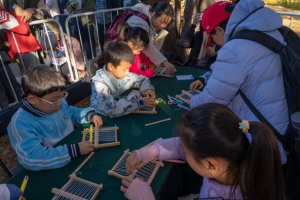 “小小工匠局”设置了四大互动体验区域,吸引了众多观众踊跃参与。在“迷你锻打台”区,孩子们在家长和志愿者的协助下,体验锻造的乐趣,直观感受金属在捶打与温度变化中的形态改变;“速织挑战”区里,大家使用简易织机,在规定时间内完成织布任务,体会纺织工艺的精巧;“活字印刷”区中,参与者排版、上墨、拓印,感受古代印刷术的智慧与魅力;“指南鱼制作”区则让孩子们亲手打造简易指南鱼,探索古代磁学的科学原理。